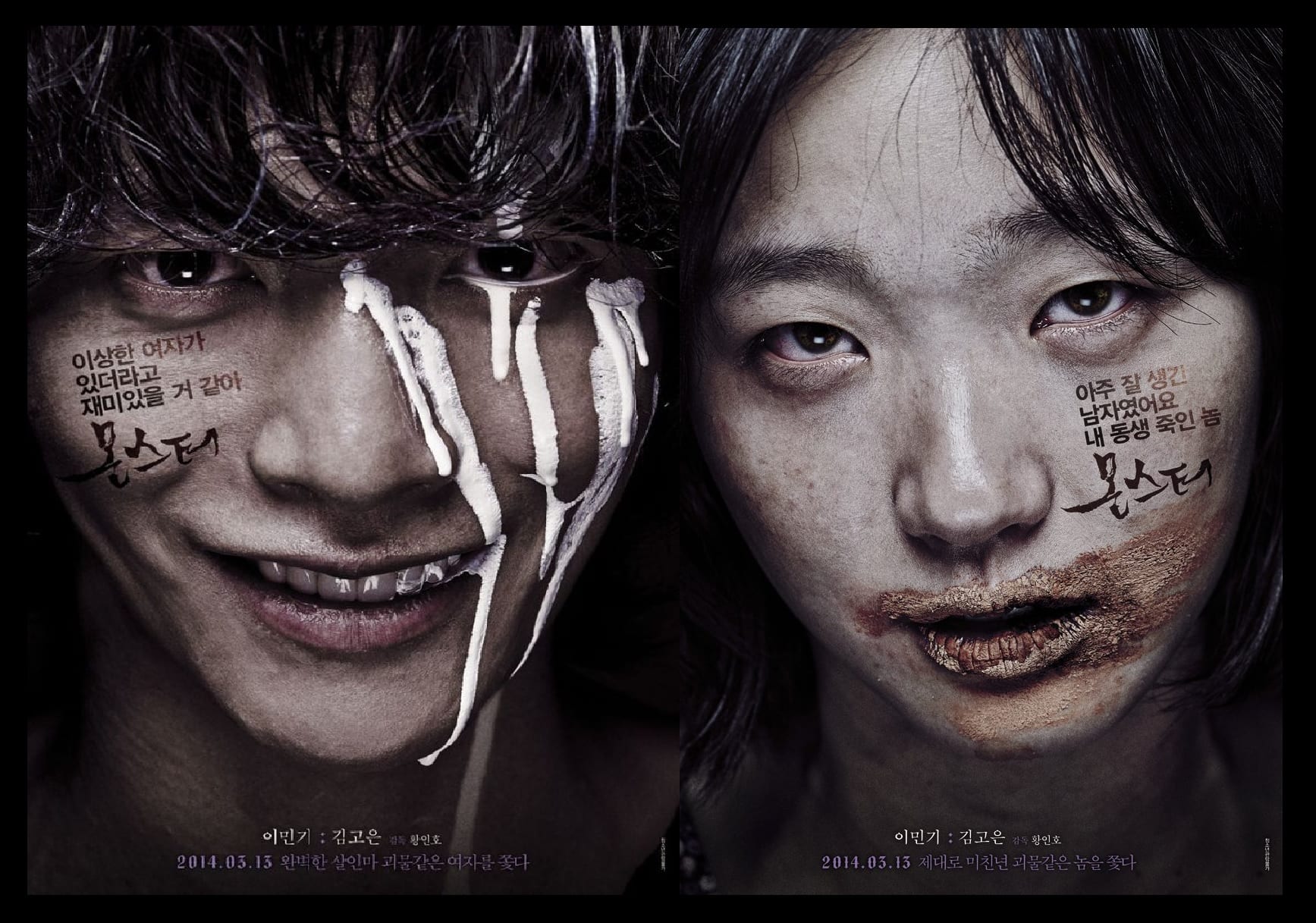 Not to be confused with the first movie on our list, “Monster” manages to tell two stories in one— that of our heroine and that of our villain. Bok Sun (played by Kim Go Eun) is a young lady with a developmental disability. She is fiercely loyal to her younger sister and works hard to provide for her after the death of their parents. A young girl suddenly shows up at their house one night, claiming that someone has murdered her older sister and is now chasing her. After taking Nari in to protect her, Bok Sun’s own sister is murdered by the man as well. As a result, Nari and Bok Sun vow to take revenge on the killer, a disturbed young man with problems of his own due to a horrifically violent past. This film is typical of the revenge flicks that build slowly and without too much violence at first, only to culminate in an action-packed, gory, violent ending for everyone involved. With the villain played by famous actor Lee Min Ki, the entire cast delivers solid, emotional performances that makes this film worth watching.