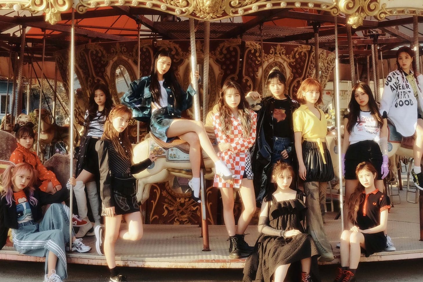 Each member looks radiant as they pose on a carousel together. They then rock individual shots which feature beautiful, scenic backgrounds. Wearing gorgeous outfits and individual looks including a sleeveless sequin dress, flower-printed denim, metallic shoes, and even a patchwork quilt dress, the group’s visuals are sure to capture everyone’s attention.