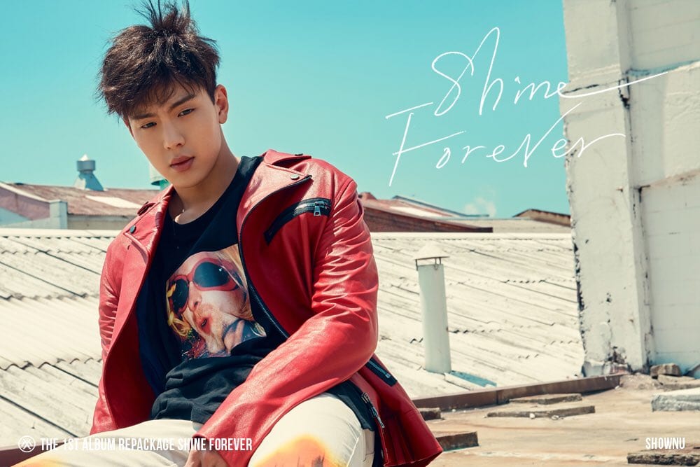 UPDATE: On June 10th KST, the teaser images for Shownu, MONSTA X’s leader, were released. He looks handsome in a red, leather jacket and khaki pants. In addition, they released a group teaser images as well! Check it out below!