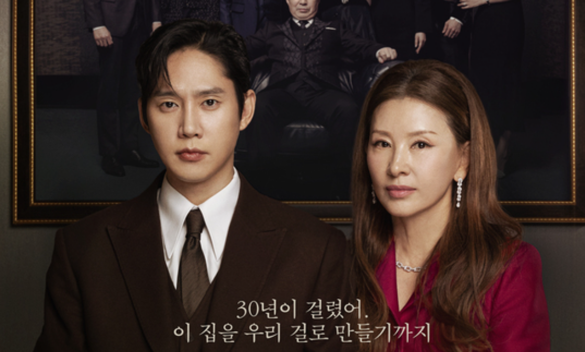 The new poster shows characters Yoon Eun Sung (Park Sung Hoon) and Moh Seul Hee (Lee Mi Sook), locking arms and posing in front of the “Queens” family photo. Although many viewers suspected it, the two have now been revealed to be mother and son. In small letters across the duo are written the words, “It took me 30 years to make this house our own.” Meanwhile, Moh Seul Hee leans into her son with a protective grip on his arm as the Queens family looks deadpan in the photo in the background (except for their conspirator Cheon Da Hye who seems to smile satisfactorily).