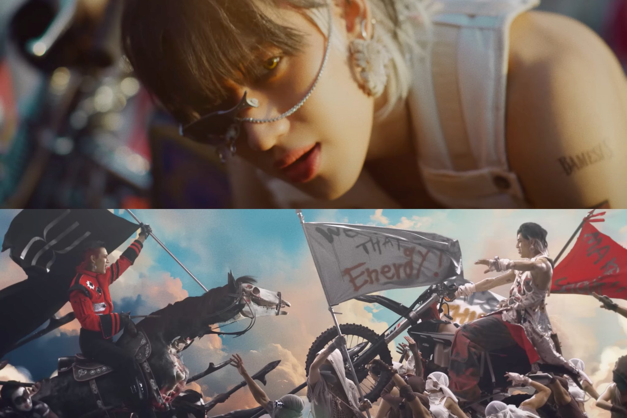 The “LAST PARADE” music video brings the epic, expansive sound to life through lavish visuals. It uses the song’s contrasting elements to create a unique mood in which the two characters intersect. In particular, BamBam’s strong body, mature visuals, and the intensity of black and red colors boast magnificent charisma.