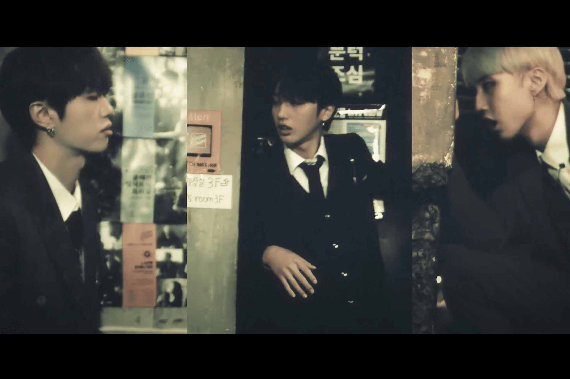 The split screen effect used in the MV shows each members’ night playing out simultaneously, which makes for a fun re-watching experience. Particularly, if you look close enough, you will notice the same cast of patrons and staff at the jazz bar who appeared in “Moonlight,” a delightful nod to preserving the continuity and realistic integrity of the films’ concepts.
