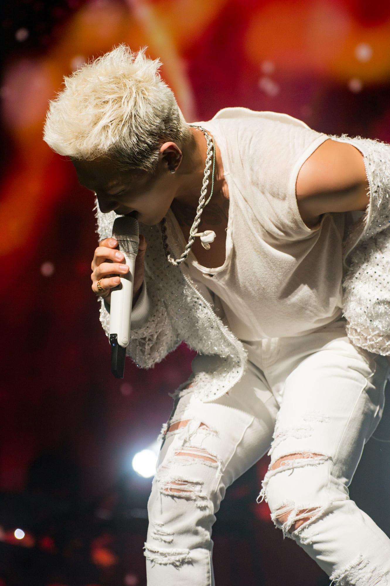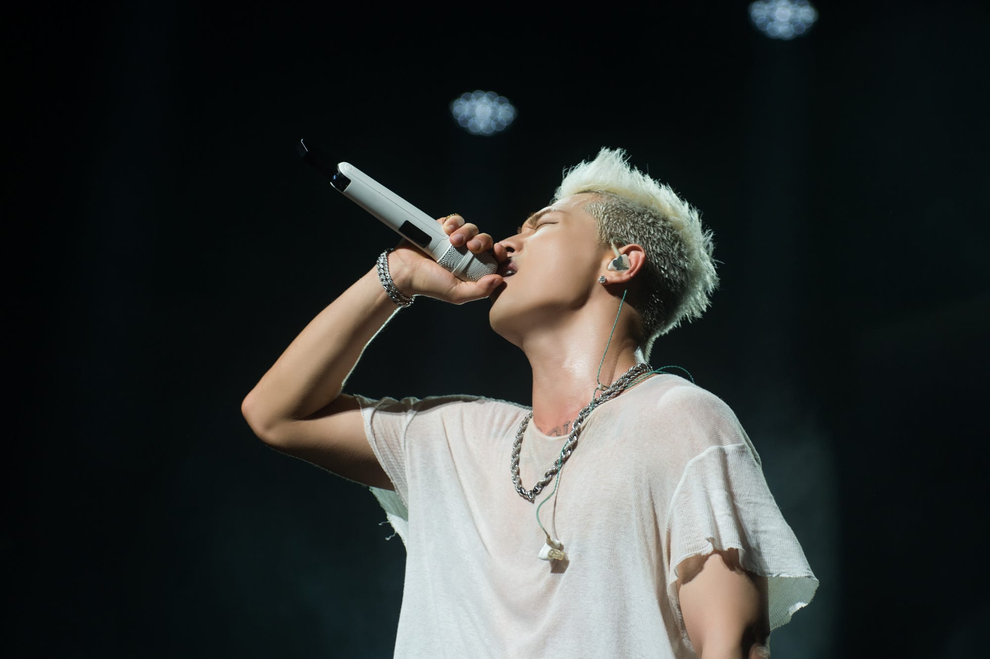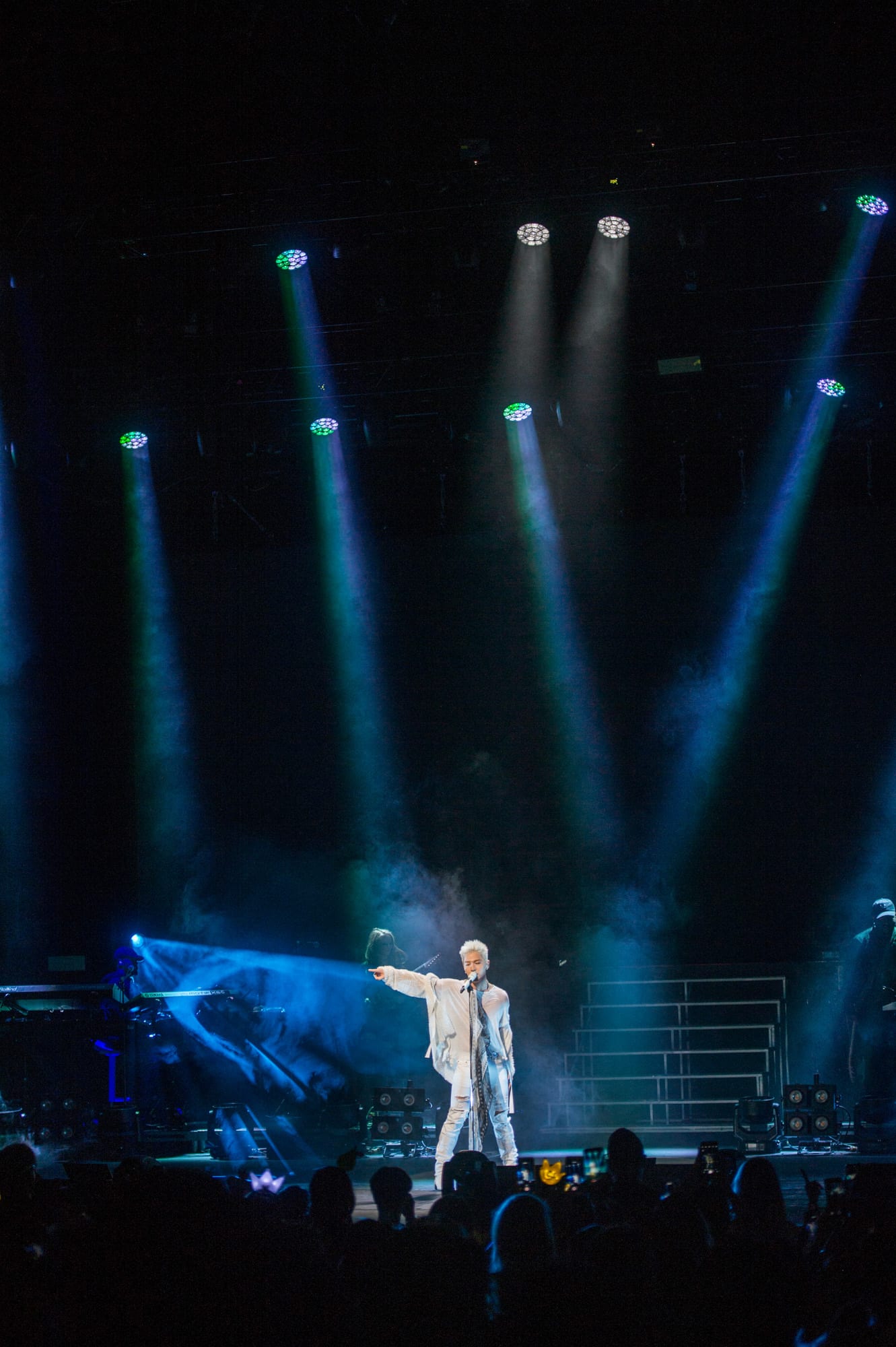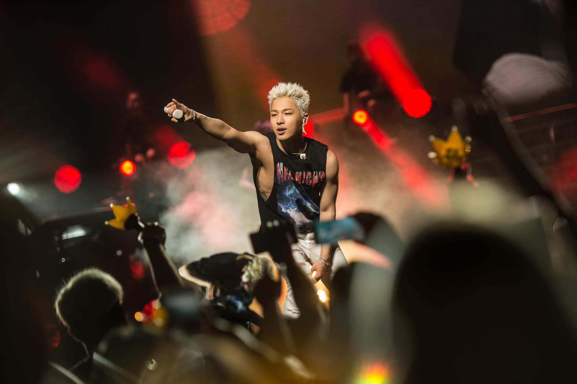 He adorned the stage in all white as he greeted the crowd and had numerous comical exchanges with over excited fans. Things took a steamy turn when female dancers accompanied him during his performance of “Body,” with the audience loving every second of it. The ladies held their own, dressed in heels and all black, contrasting with Taeyang’s staple, all white ensemble.