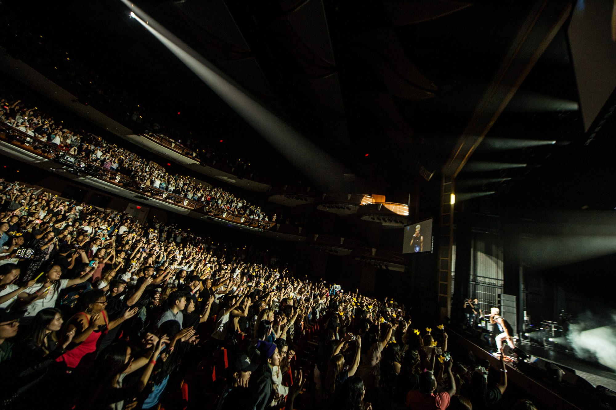 To everyone’s surprise, Taeyang opened the show with just his vocals to the title track “White Night.” Psychedelic visuals accompanied his powerful voice, setting a great mood for the night. Next up was his dance classic “Ringa Linga,” which had everyone on their feet and in the aisles. From there, the party didn’t stop.